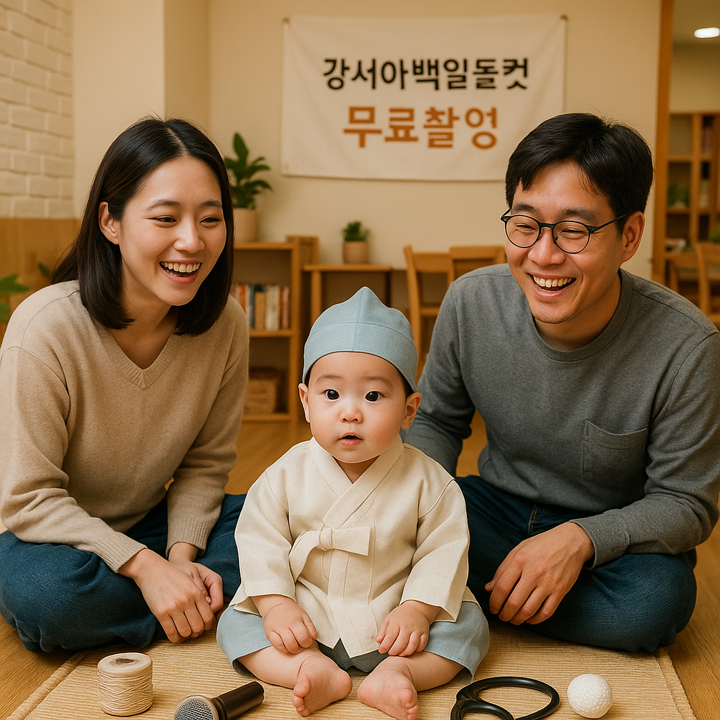 📢 지금 강서구에서 돌잔치·백일상 상차림 세트 + 촬영 공간을 전부 무료로 대여해주는 서비스를 운영 중이에요!