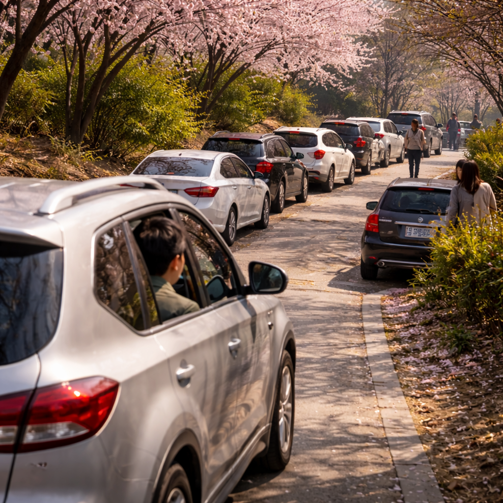 요금은 저렴한 편이지만 문제는 주차 자리입니다. 겹벚꽃 시즌에는 평일 오전에도 대기가 발생할 정도로 차량이 많습니다.